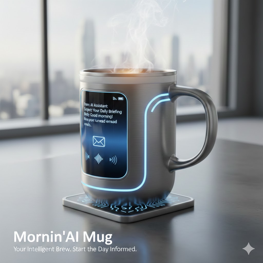 Le Mornin’AI Mug n’est pas qu’une simple tasse, c’est votre assistant personnel du matin, infusé d’intelligence artificielle. D’un design élégant et futuriste, cette tasse connectée révolutionnaire transforme votre rituel du café en une expérience de productivité sans effort.